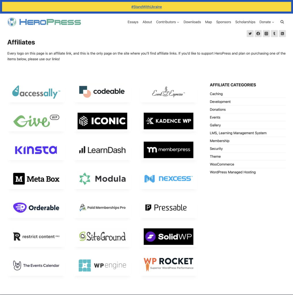 The Affiliate Catalog Plugin allows you to make a single page which lists all of your affiliate links. The purpose is to allow you to make a single stop for people to support you without having to chase down links all over your site.